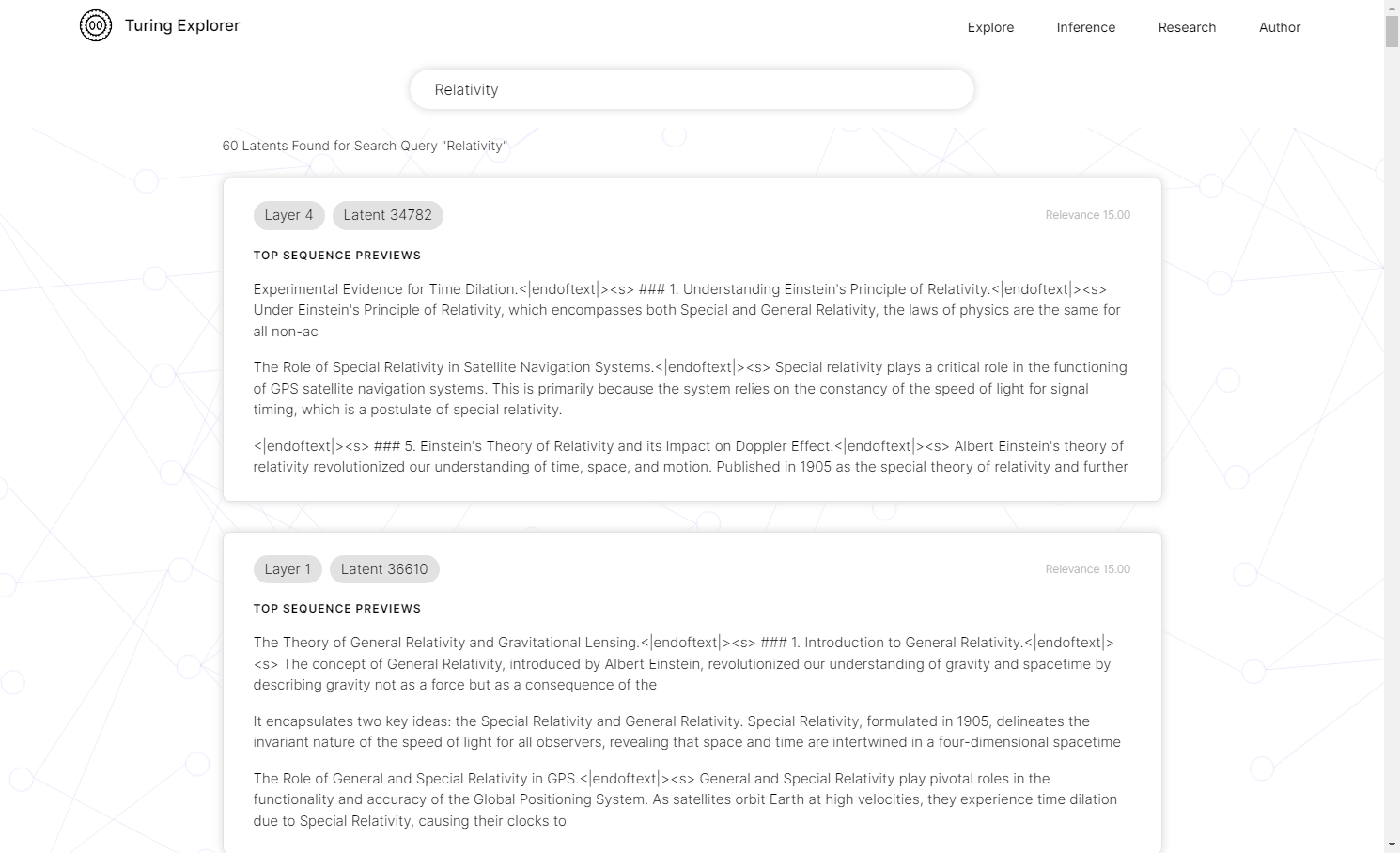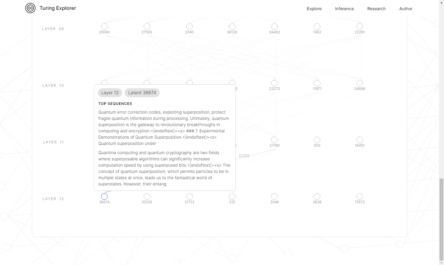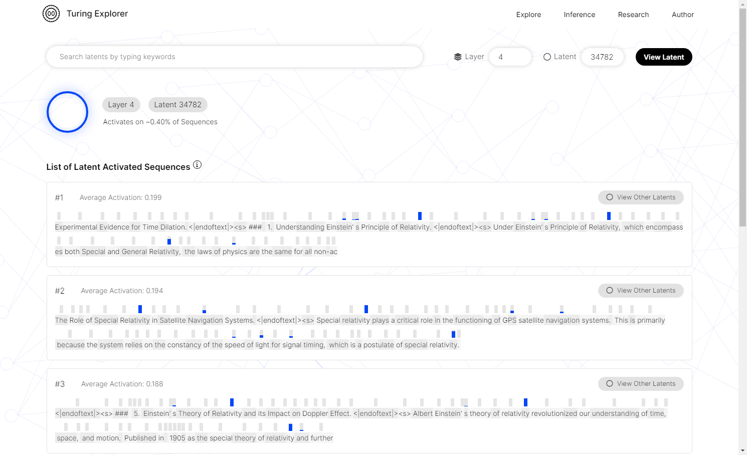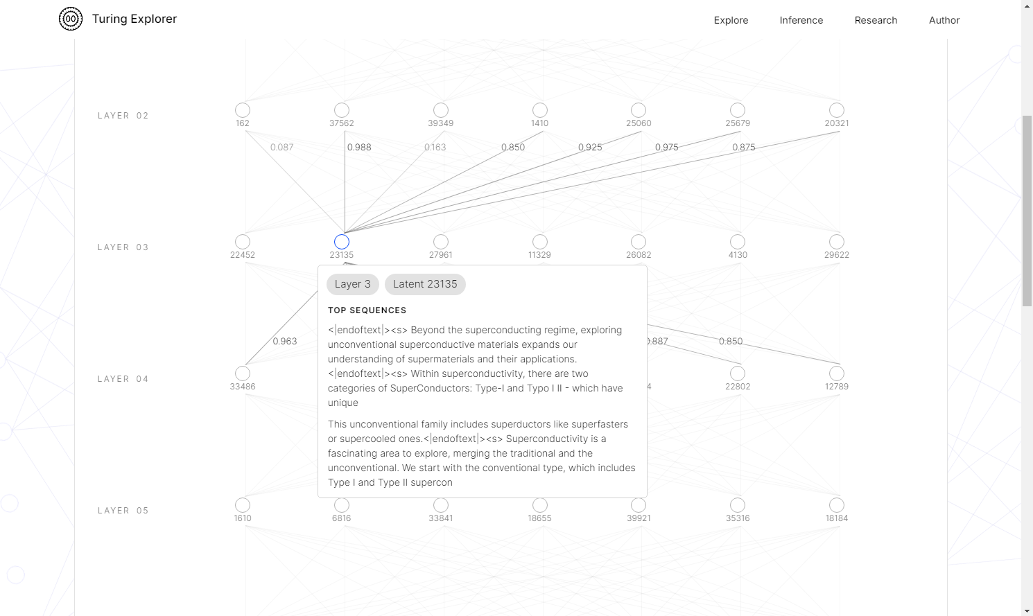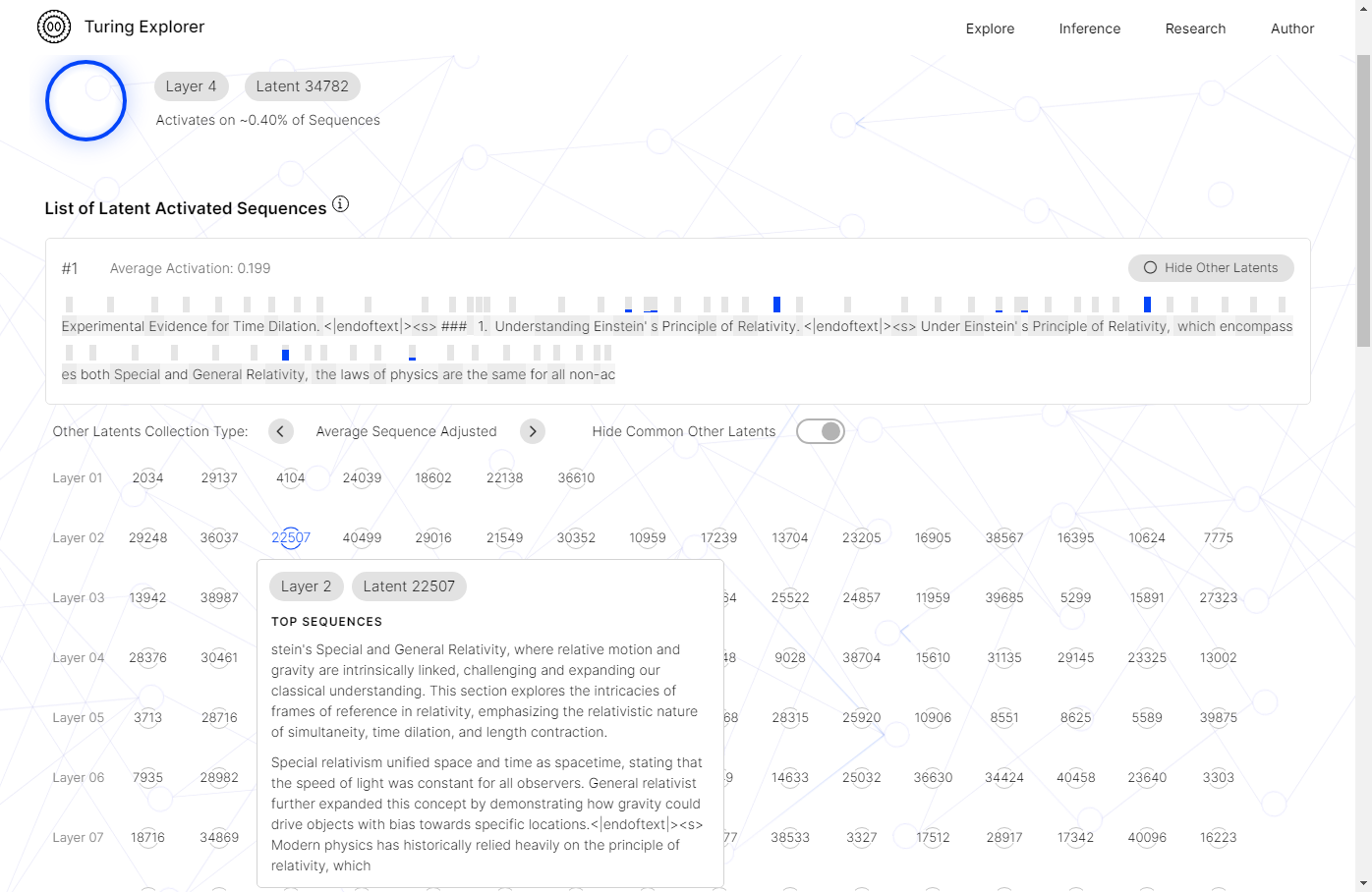 Using this tool, one can navigate the sparse autoencoder latent space of Turing‑LLM‑1.0‑254M and gain an understanding of how these large language models may function internally.