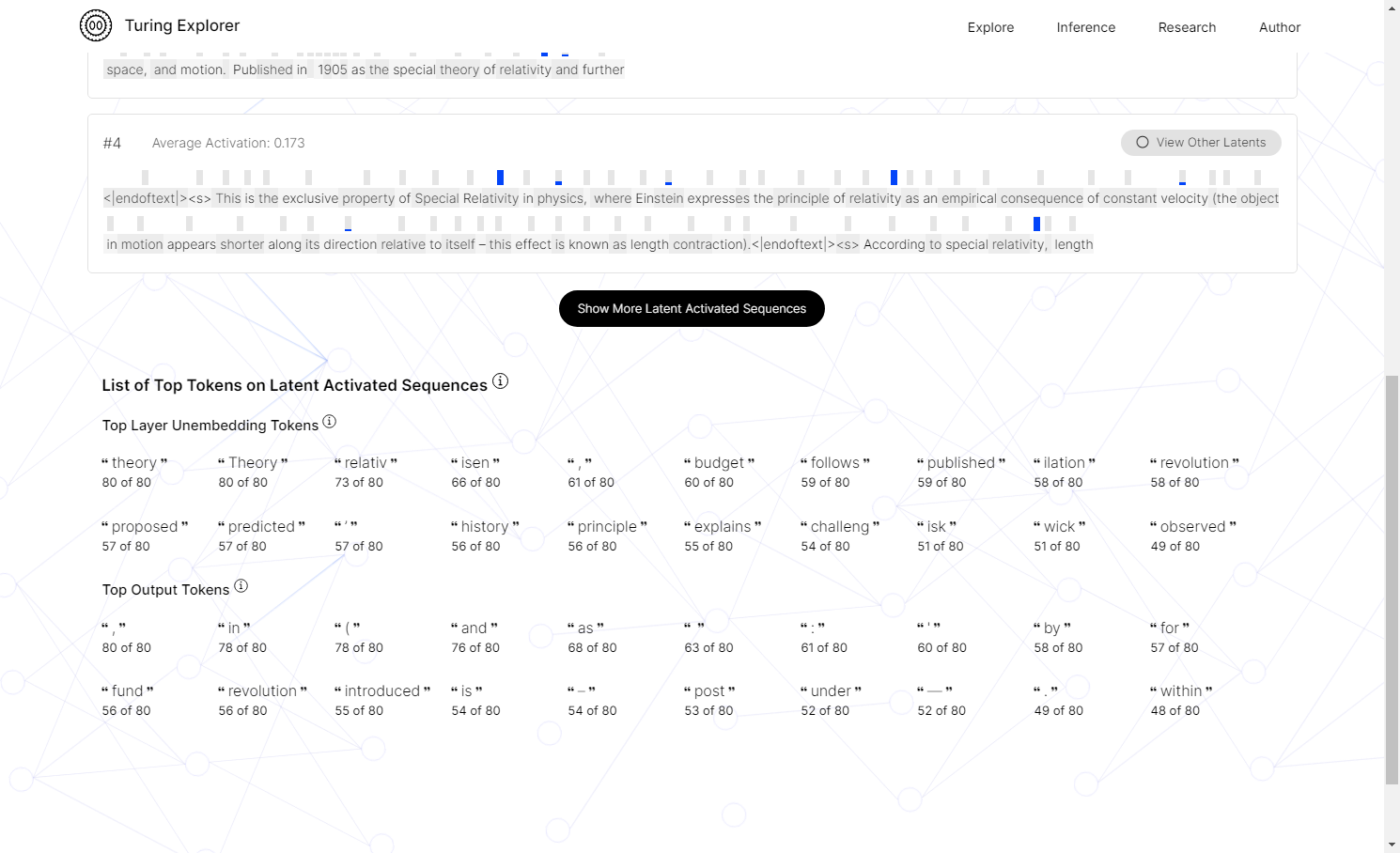 Run the Turing‑LLM base model and view connections between top latents to better understand how latents work together to form thoughts.